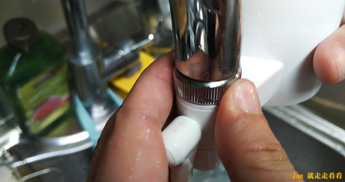 Jon家裡的水龍頭剛好是外牙式的,是最方便安裝的型式,只要把濾嘴轉下來