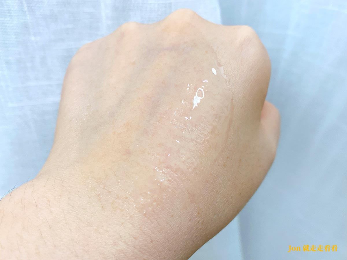 在手上精華液呈現透明質地,推開可以感受到滿滿的水感