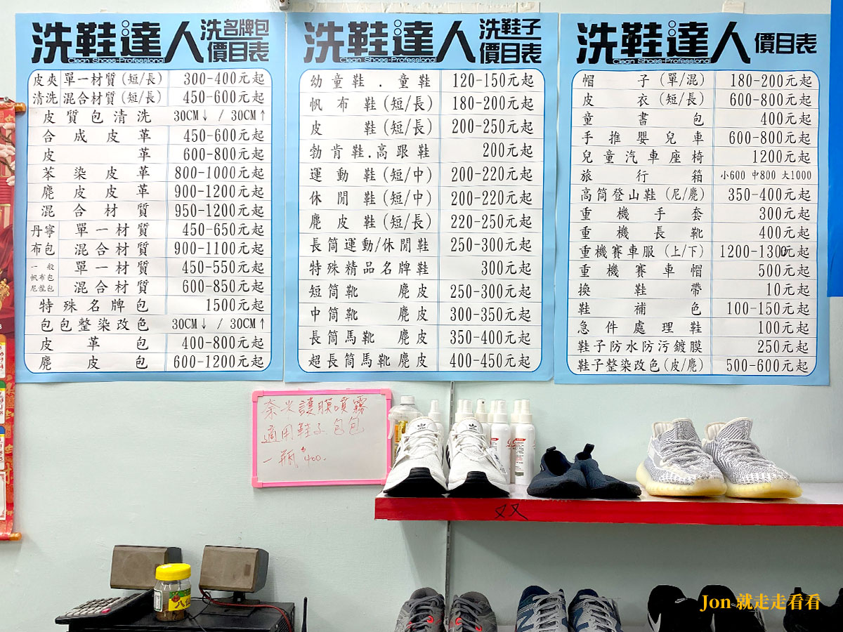 所有送進【洗鞋達人 竹東店】的單品都會經過手工清洗和後續的保養,老闆堅持把每件單品都完成最高程度的清潔才能送回顧客手中,鞋子、包包、麂皮、帽子、皮衣、賽車服、嬰兒車、汽車安全坐椅、旅行箱等各種不方便清洗的單品,從清潔、保養到皮件染整改色,全都一手包辦